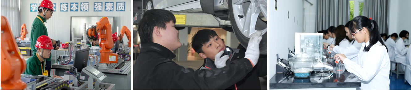 专业建设:现有五年制高职、3+3、普通中专三个办学层次,五年制高职包括机电设备技术、工业机器人技术、新能源汽车技术三个专业,3+3包括分析检验技术,三年制中职有分析检验技术、智能设备运行与维护、汽车运用与维修三个专业。其中,五年制高职机电设备技术专业于2023年建成为江苏省优质专业、苏州市现代学徒制试点项目和江苏联院现代学徒制示范专业。本专业建成江苏省现代化实训基地、太仓市智能控制公共实训基地和江苏联合职业技术学院高水平产业学院。作为苏州现代学徒制试点单位,汽车运用与维修专业荣获江苏省职业教育高水平示范性实训基地、苏州高技能人才公共实训基地、江苏省第三批中小学职业体验中心等多项荣誉称号,同时承担江苏省中职学生学业水平考试汽车维修类技能考试考点任务。分析检验技术专业是江苏省中职学生学业水平考试化工类技能考试考点,也是中国化工教育协会、全国新药开发与评价产教融合共同体、长三角绿色化工与医药一体化发展职教联盟和苏州市生物医药产教融合联合体成员单位。作为苏州市化工职业教育集团牵头单位,曾获评苏州市优秀职业教育集团。