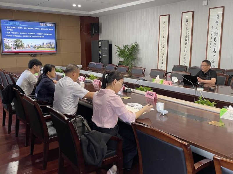 参观结束后,我校丁亮校长热情接待了考察团,并在尚德楼304会议室进行了座谈。丁亮校长详细介绍了我校的办学理念、办学特色,并与伍国樑书记就师资培养与能力提升等方面进行了深入交流。伍国樑书记表示,感谢本次太仓中专的热情接待,通过本次的参观交流,感悟颇丰,也为自己的管理工作注入了更多的思考,进一步拓宽了自己的工作思路。
