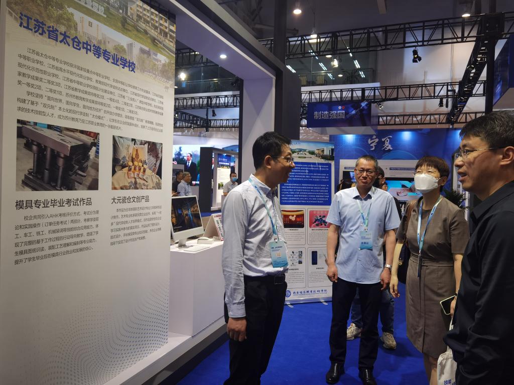 本次主题展览共有来自全国30个省份、近430所职业院校参展,太仓中专亮相主题展览制造强国板块江苏展区,江苏展区共3所中职校、6所高职院校参展。太仓中专本次展出了机械加工类专业教学项目、艺术专业校企合作产品等项目,通过展板展示了太仓中专推进现代学徒制人才培养,校企合作培养复合型高技能人才培养的实施路径。