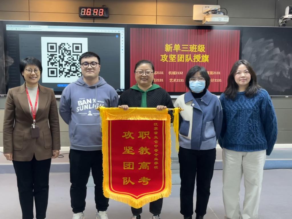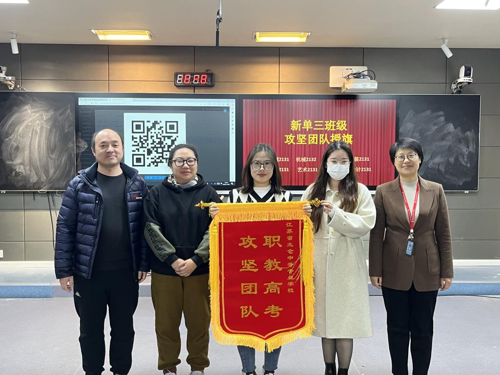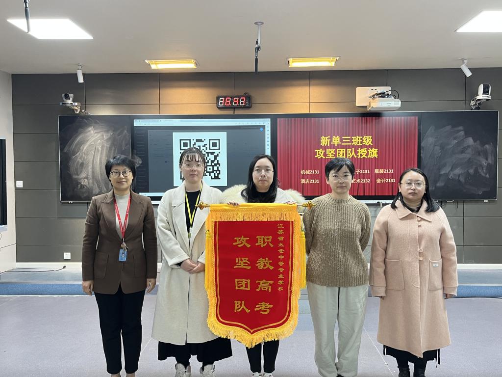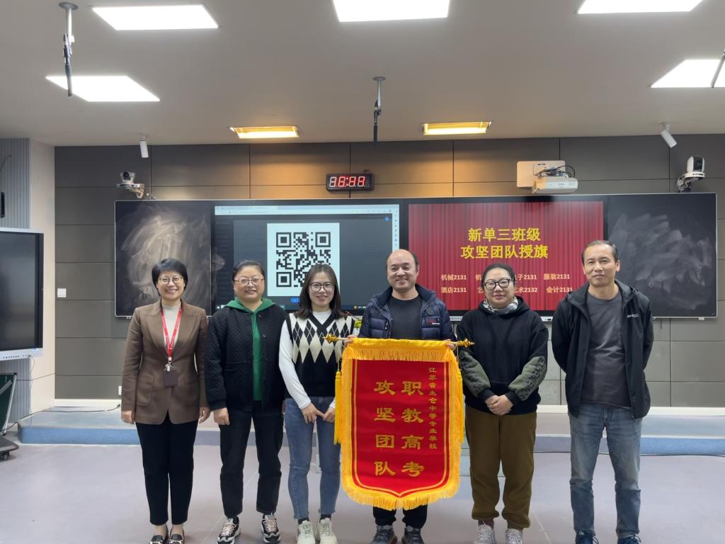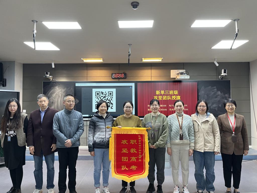 接着,由殷利副校长为新单三班级攻坚团队授旗,陆伟主任公布《平博网页版对口单招高考质量奖励方案》以及2024届对口单招本科线班级目标。殷利副校长肯定了单三教学团队的辛勤付出,希望在备战2024届职教高考中单三教学团队能够心往一处使,全心全意为学生服务,在明年的职教高考中完成目标并力争突破。