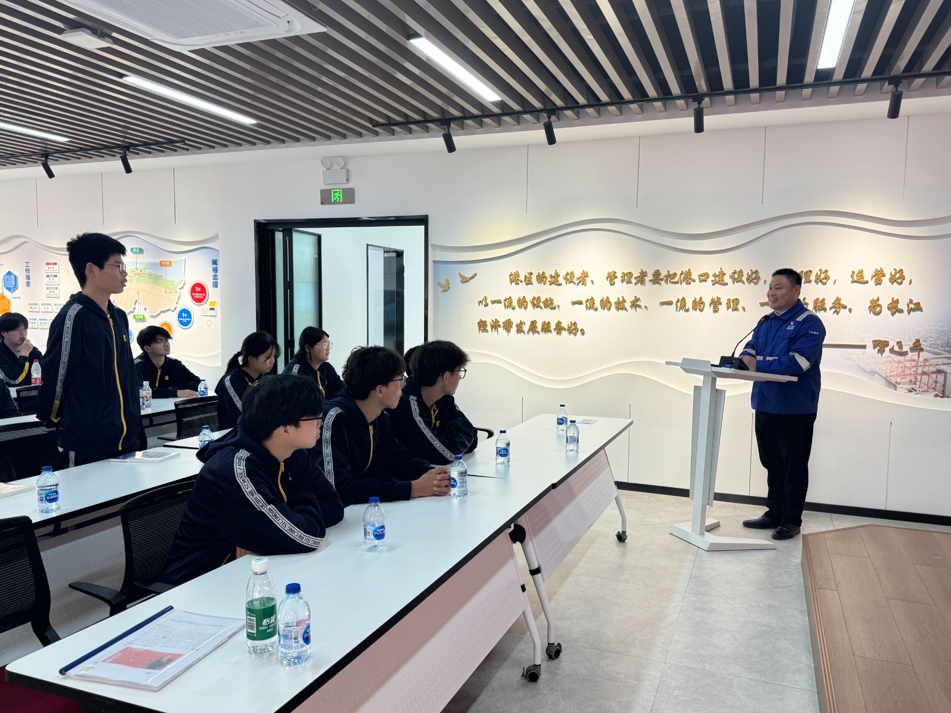苏州港作为全国首个年集装箱吞吐量突破千万标箱的内河港,连续15年领跑长江港口发展。抵达太仓四期码头后,首先,同学们在工作人员的带领下,登上观景台,近距离观摩全球领先的全自动起重机作业场景。巨大的机械臂精准抓取集装箱,无人运输车穿梭有序,信息化系统实时调度,让同学们直观感受到智慧港口的效率与创新,为后续的研学活动奠定了实践认知基础。