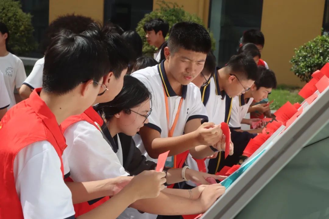 为了让同学们更好地了解祖国的历史和文化,在“五史知识竞赛”答题活动中,同学们踊跃参与,进一步丰富了历史知识,也表达了对祖国的热爱之情;在“我为祖国送祝福”活动,同学们一笔一划书写出祖国的繁荣昌盛的赞美和美好生活殷切祝福。