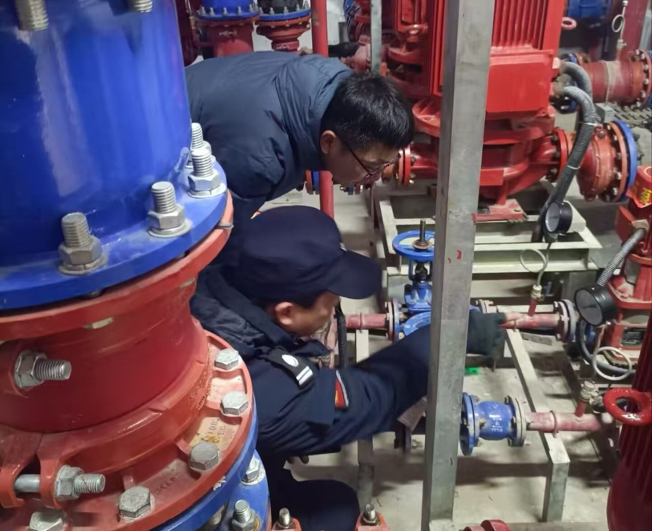 检查团队深入校园重点场所,以“查细节、抓整改、保长效”为目标,逐项核验各项安全装置。在港务和商务的实训室,检查团队重点检查设备用电是否规范、基础设施有无损坏及消防设施维护记录等情况;在学校配电房和地下水泵房,仔细观察设备运行状态,查看有无异响及管道漏水等隐患;对于学生宿舍和楼顶空气能设备,检查人员登顶查看设备固定有无松懈、管道是否漏水及安全防护装置是否正常,确保高空设施稳固无隐患;在学校食堂,从后厨卫生到油烟管道清洁,逐一排查风险点,严把“入口关”。针对发现的水泵房不明异响、食堂干手器电路短路等问题,后勤服务团队当天开展维修,并于当天进行了复查。