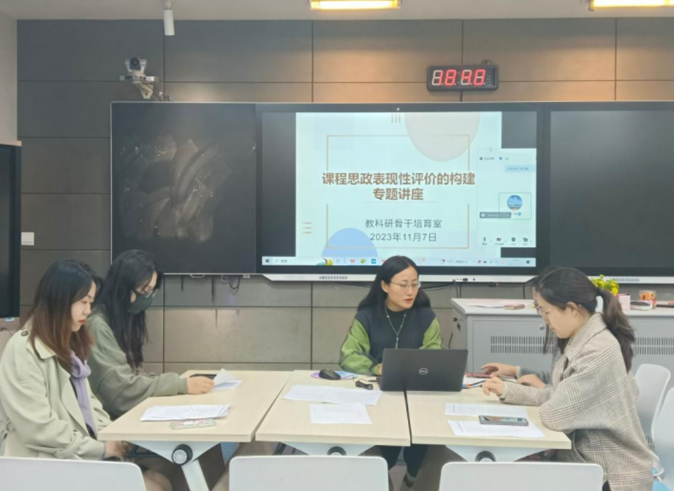 第一议程是董燕老师分享《课程思政表现性评价的构建——基于<个人所得税筹划>课例》专题讲座。董老师围绕“课程思政评价的痛点问题”“课程课程表现性评价的要素构建”“课程思政表现性评价的实践案例”三方面内容分享了课程思政表现性评价体系建构的方法。培育室成员听完后纷纷表示受益匪浅,从课程思政评价实践中提炼总结了理论成果,打开了老师们立足教育教学实践开展主题式研修的思路。