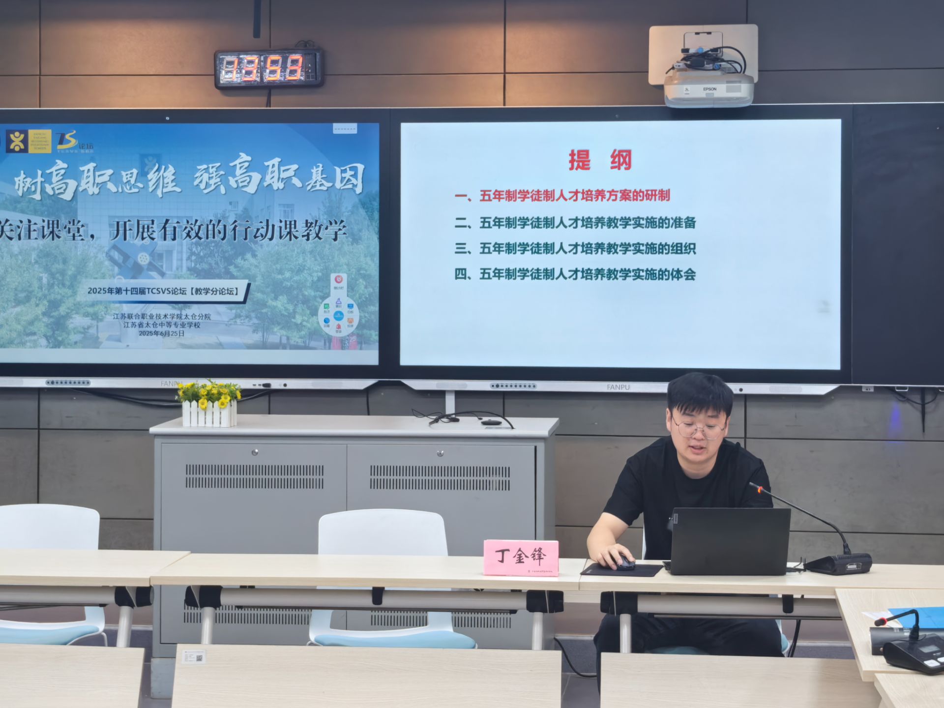 2025年6月26日,为进一步深化太仓特色学徒制建设,推进“模块化+”教学改革,提升人工智能与专业教学的融合水平,推动学校人才培养质量再上新台阶,由教学管理处主办的2025年TCSVS教学条线论坛在东仓路校区录播教室举行。本次论坛以“关注课堂,开展有效的行动课教学”为主题,王成忠副校长、教学管理处全体成员、各系部教学骨干及青年教师等积极参与,通过专题报告、案例展示、主题演讲、微论坛等形式展开深度研讨。