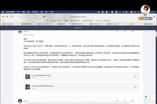 会议中邀请了电商2151班方缘、严毅唯、张志豪同学分享了他们在这两个礼拜所学习到的技能、所思所感和学习的阶段性成功。从岗位上的实践学习、与企业师傅的相处模式、自己两周的成长感悟等等方面的分享可以感受到现代学徒制开展的魅力所在。三位学生均提及企业里所接触到的人或事,所学习到的知识、技能与在学校里是完全不同的。这也促使各位学生在不久之后回到学校能够有所针对地提升自己各方面的业务能力和技能水平。三位同学也展示了部分他们在企业技能学习中的阶段性成果。