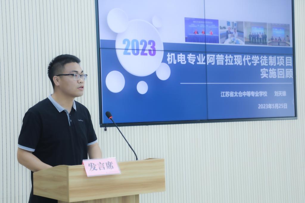 2023年5月25日上午,太仓中专在东仓路校区尚远楼报告厅举行机电专业阿普拉现代学徒制项目开班仪式暨拜师仪式。