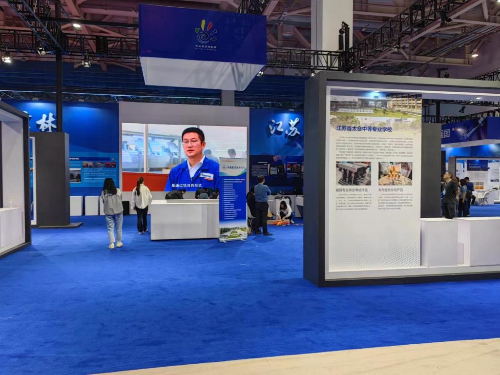 本次主题展览共有来自全国30个省份、近430所职业院校参展,太仓中专亮相主题展览制造强国板块江苏展区,江苏展区共3所中职校、6所高职院校参展。太仓中专本次展出了机械加工类专业教学项目、艺术专业校企合作产品等项目,通过展板展示了太仓中专推进现代学徒制人才培养,校企合作培养复合型高技能人才培养的实施路径。