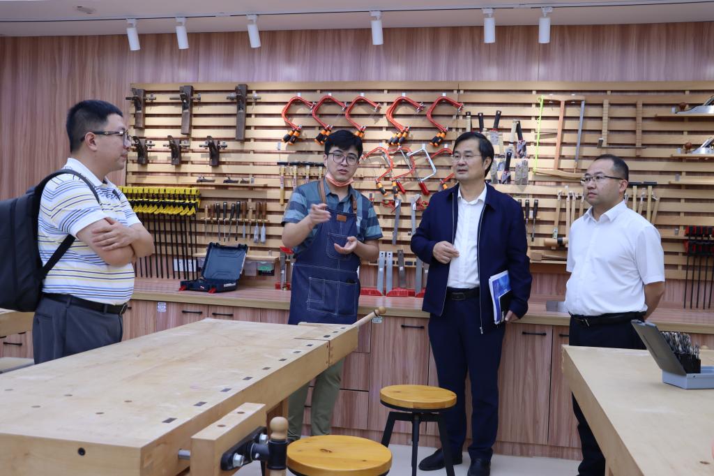 调研组考察了东仓路校区校内随美艺术设计培训中心、木工培训中心、休闲体育实训基地,机电、机械实训基地等场室,并和场室老师进行交流沟通,细致深入的了解了学校办学特色、学生实习实训管理等情况。