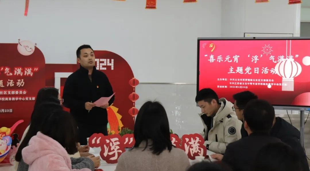 在元宵节佳节来临之际,为充分发挥中华传统节日“厚植家国情怀、培育精神家园”的重要作用,发挥党员、青年和团员在传统节日文化传承中的重要作用,弘扬元宵传统民俗文化,同时普及垃圾分类知识。2024年2月23日,平博网页版商务教学中心党支部与陆公社区党支部联合举办“喜乐元宵 ‘浮’气满满”主题党、团日活动。浮桥镇垃圾分类办公室副主任张海江、浮桥镇团委书记顾婷、副书记夏佳凯、陆公社区党支部书记黄刚、副书记张新峰、副主任吴艳红、学校党委书记陆金华、商务教学中心全体党员教师、部分团员教师和学生代表共50余人参加了本次活动,活动由商务教学中心主任陆志良主持。