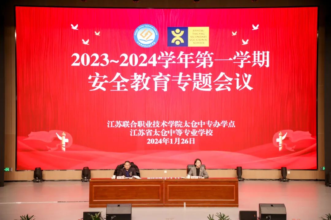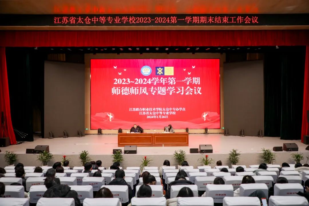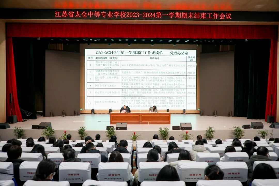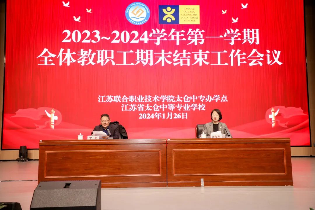 1月26日上午,太仓中专2023-2024学年第一学期工作总结会在港城校区报告厅顺利召开,校领导班子和全体教职员工参加了本次会议,会议由校党委书记陆金华主持。