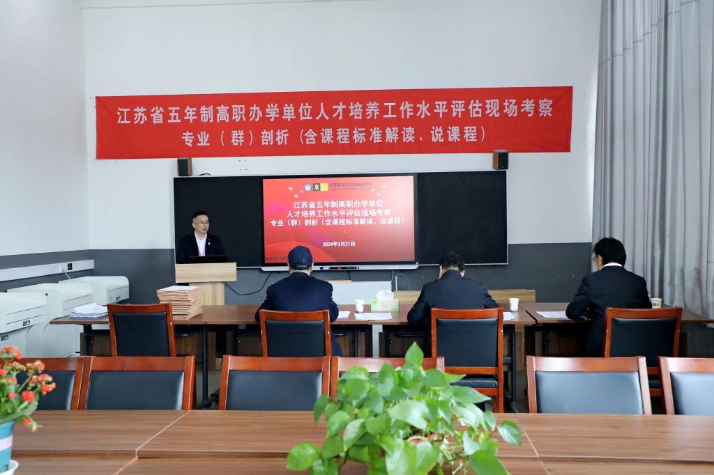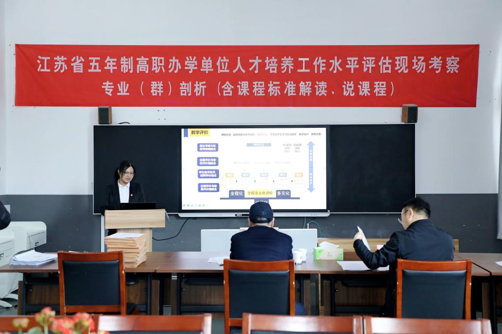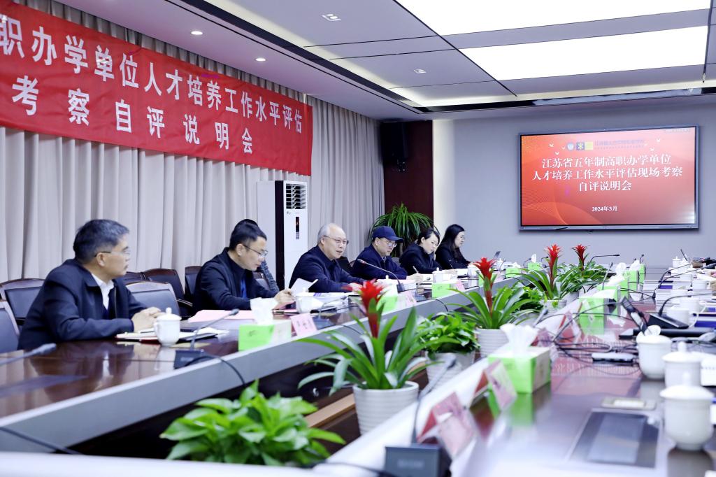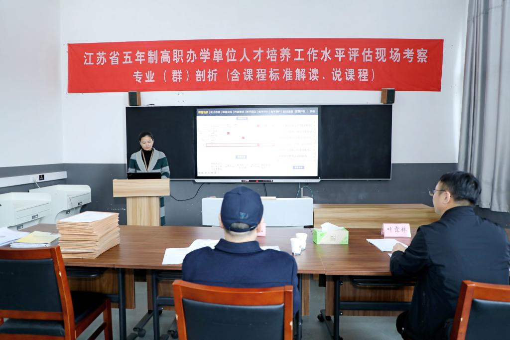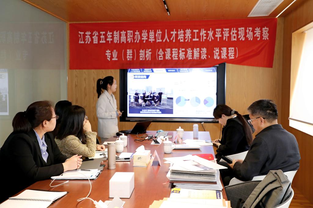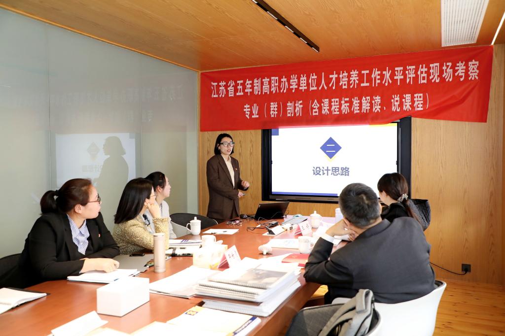 王成忠以《践行太仓特色学徒制 促进五年制高职高水平专业(群)建设》为题,作了五年制高职专业(群)建设专项汇报。汇报结束后,专家组围绕人才培养工作相关问题进行了现场提问。