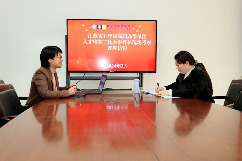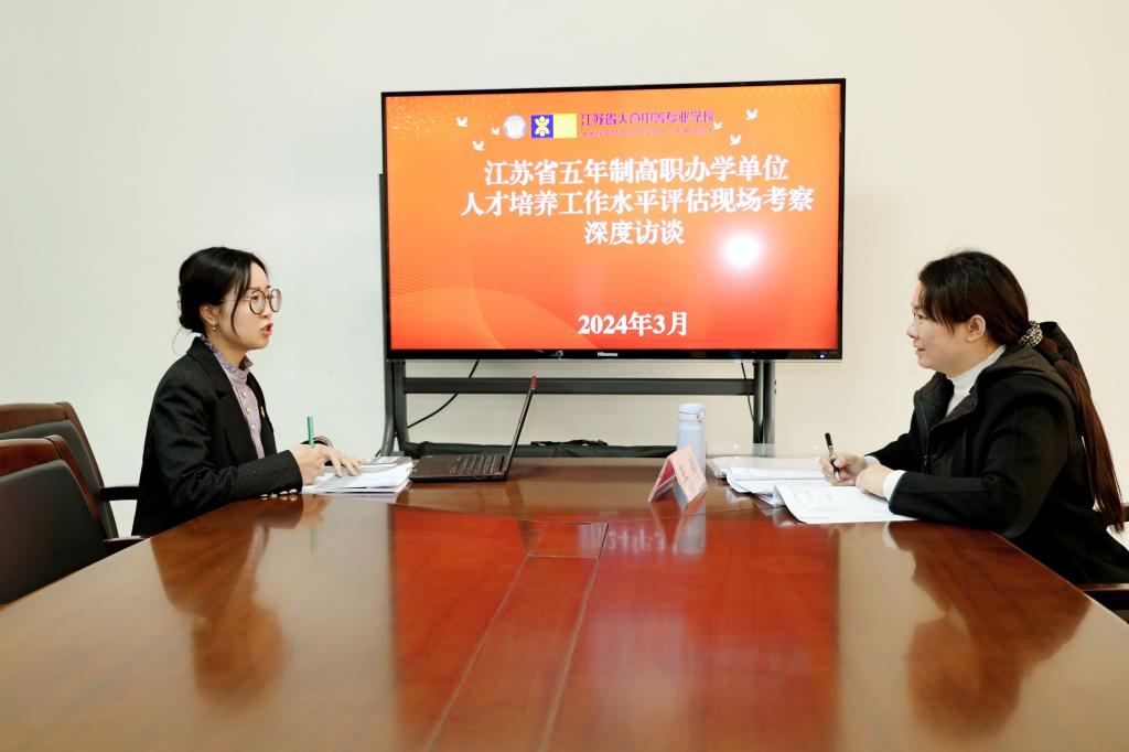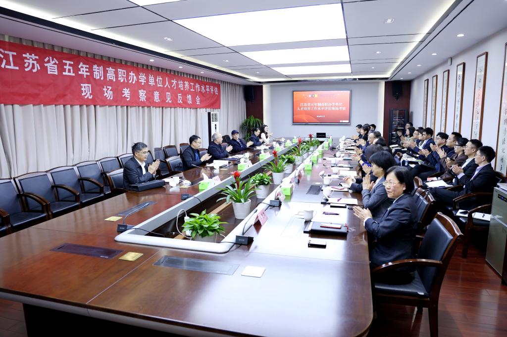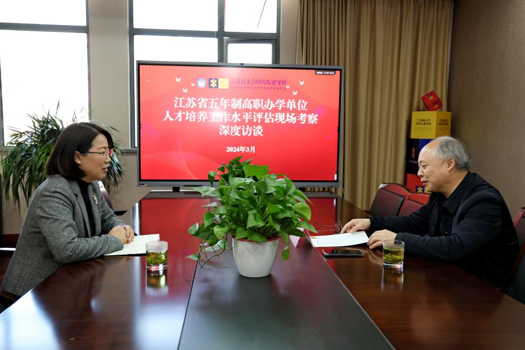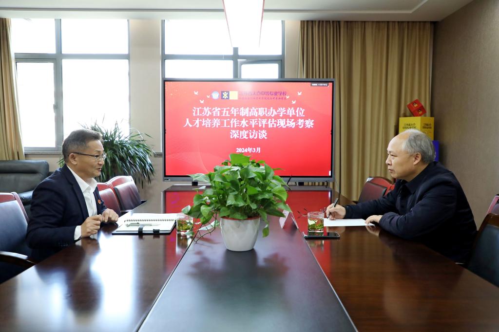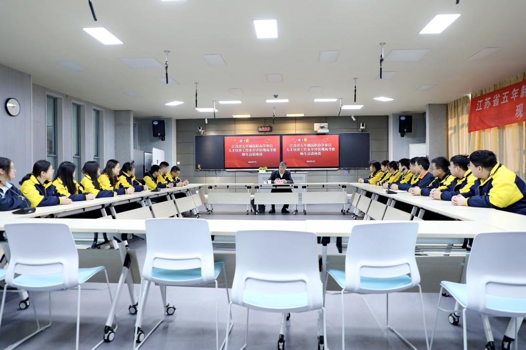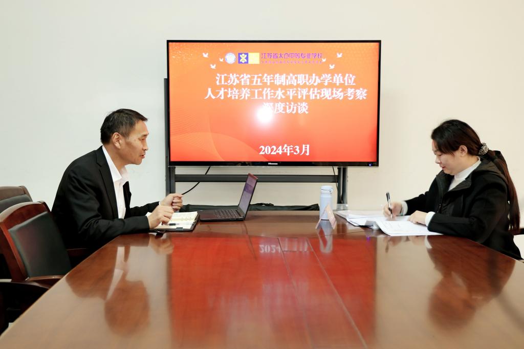 王成忠以《践行太仓特色学徒制 促进五年制高职高水平专业(群)建设》为题,作了五年制高职专业(群)建设专项汇报。汇报结束后,专家组围绕人才培养工作相关问题进行了现场提问。