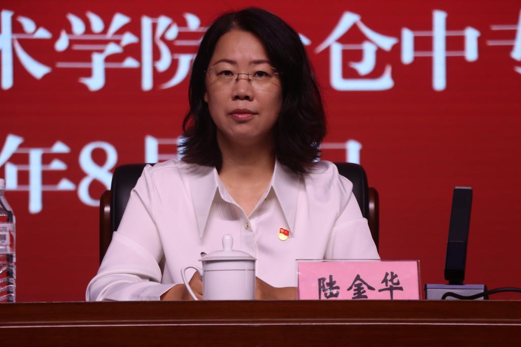 第二个议程,陆金华代表校级领导班子向全体教职工布置了2024-2025学年度工作,围绕10项工作目标,详细介绍了建设现代学校治理体系、夯实学校高质量发展基础、提升专业建设水平等6个板块20项工作任务。