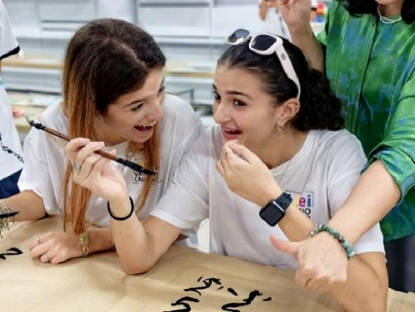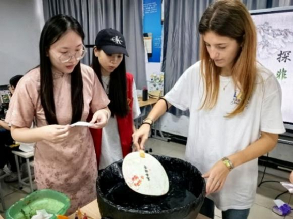 9月18日下午,在艺术系专业老师的指导下,意大利学生们体验了毛笔书法,感受了中国文字的历史与智慧。