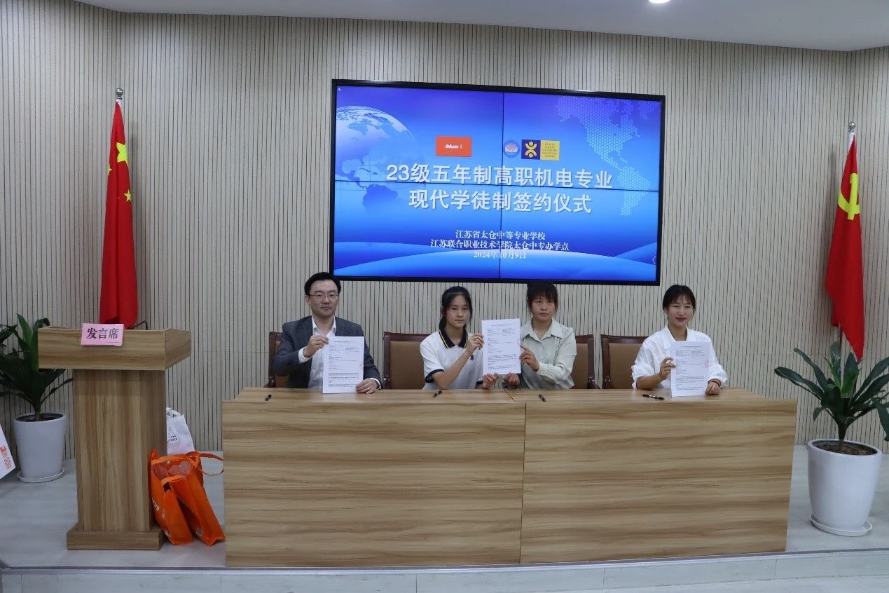 2024年10月9日,我校在东仓路校区尚远楼三楼报告厅顺利举办2023级五年制高职机电专业现代学徒制三方协议签约仪式。