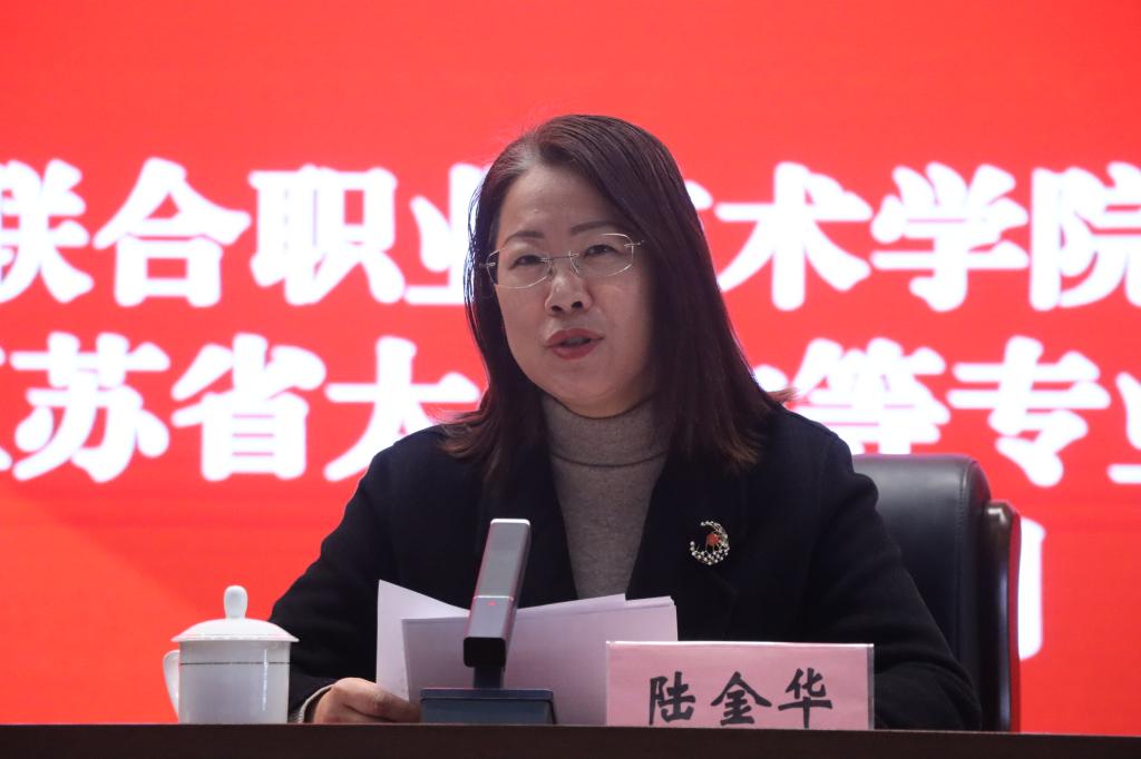 会上,陆金华代表领导班子,全面总结和回顾本学期全校的教育教学工作。她指出,本学期围绕省五年制高等职业教育办学单位人才培养工作水平评估、港城校区二期建设规划、江苏联合职业技术学院分院创建等重点项目开展工作。全体教职员工牢记嘱托、感恩奋进,围绕做好"四篇文章",推进"一冲刺三提升"目标要求,不断深化改革创新,擦亮办学特色品牌,深化“一引领三建设一合作”内涵品质,以“模块化+”助力高质量课堂,通过校企合作推进“双师型”团队建设,各项工作稳步推进。