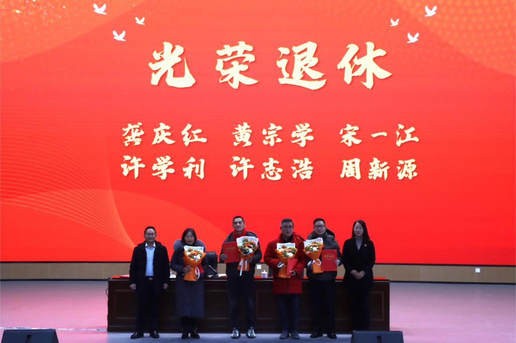 会上,为本学期退休的教师举行了光荣退休仪式,校领导班子为退休教师颁发光荣退休证书,并代表全体教职工向退休教师送出诚挚的敬意和美好的祝福。