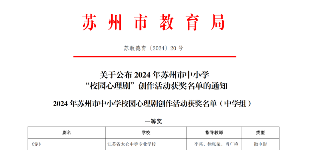 《笼》冲破青春桎梏,江苏联院太仓分院(太仓中专)斩获苏州市一等奖!