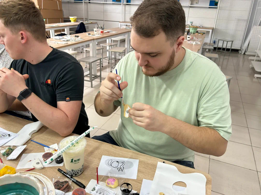 此次访问的又一亮点,是彩陶艺术体验课程。在太仓中专手工艺术工作坊,德国师生们被琳琅满目的陶艺作品所吸引。指导老师向他们介绍了彩陶的历史、制作工艺以及创作技巧。在精心指导下,中德两国学生共同创作,将中国传统彩陶艺术与现代冰箱贴设计巧妙结合,充分发挥学生创造性和中意不同审美,创作出一系列富有创意与个性的作品。