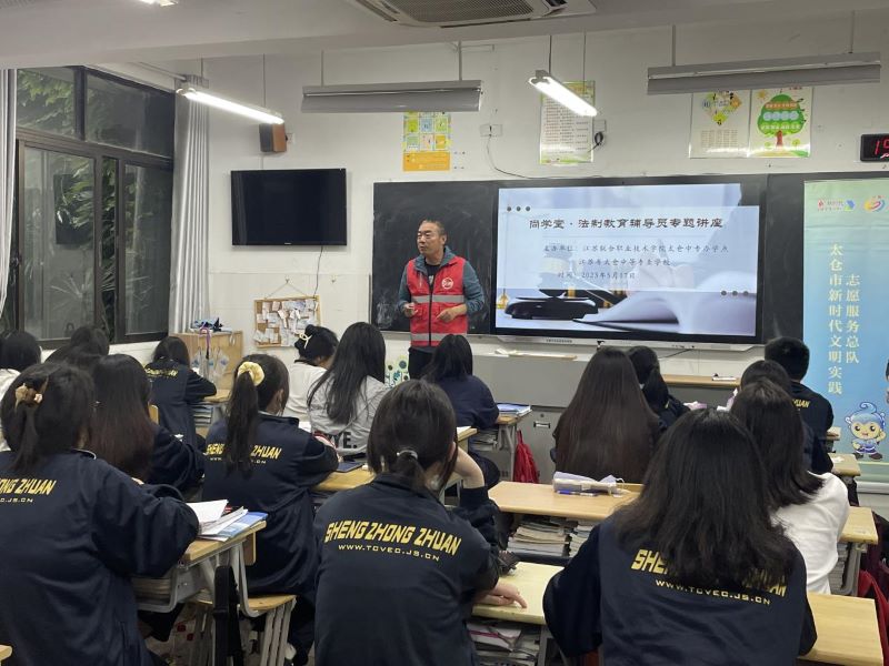 2023年5月17日下午,太仓市普法志愿者大队负责人赵广新在日语2101班开展了“民法典进校园”主题班会。以法论事,结合生活对同学们进行了安全普法教育。授课中,赵老师重点结合《民法典》与青少年学习、生活紧密相关法律知识,以生动有趣的语言,结合《民法典》相关条文,以“民法典如何保护我们自己”为重点进行讲授。通过案例分析,同学们了解了在学习和生活中,哪些行为在法律上有效,那些行为在法律上无效。宣讲中还以问答的方式和同学们进行互动,激发同学们的听课兴趣,让他们对高空抛物、交通安全与法律等民法概念及如何使用民法典保护自己有了更直观而深刻的理解。